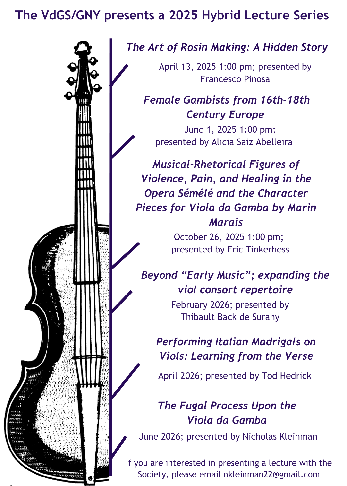 If you’re interested, please email info@vdgsgny.org and say which size viol you’d like to play, whether you would describe your level as advanced beginner, intermediate, or high intermediate, and whether you have any time constraints.